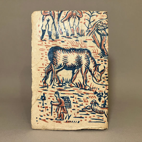 Two volumes. Two-color blockprinted wrappers with pastoral and building scenes; pointed parchment sewing support ends left long inside flyleaves.